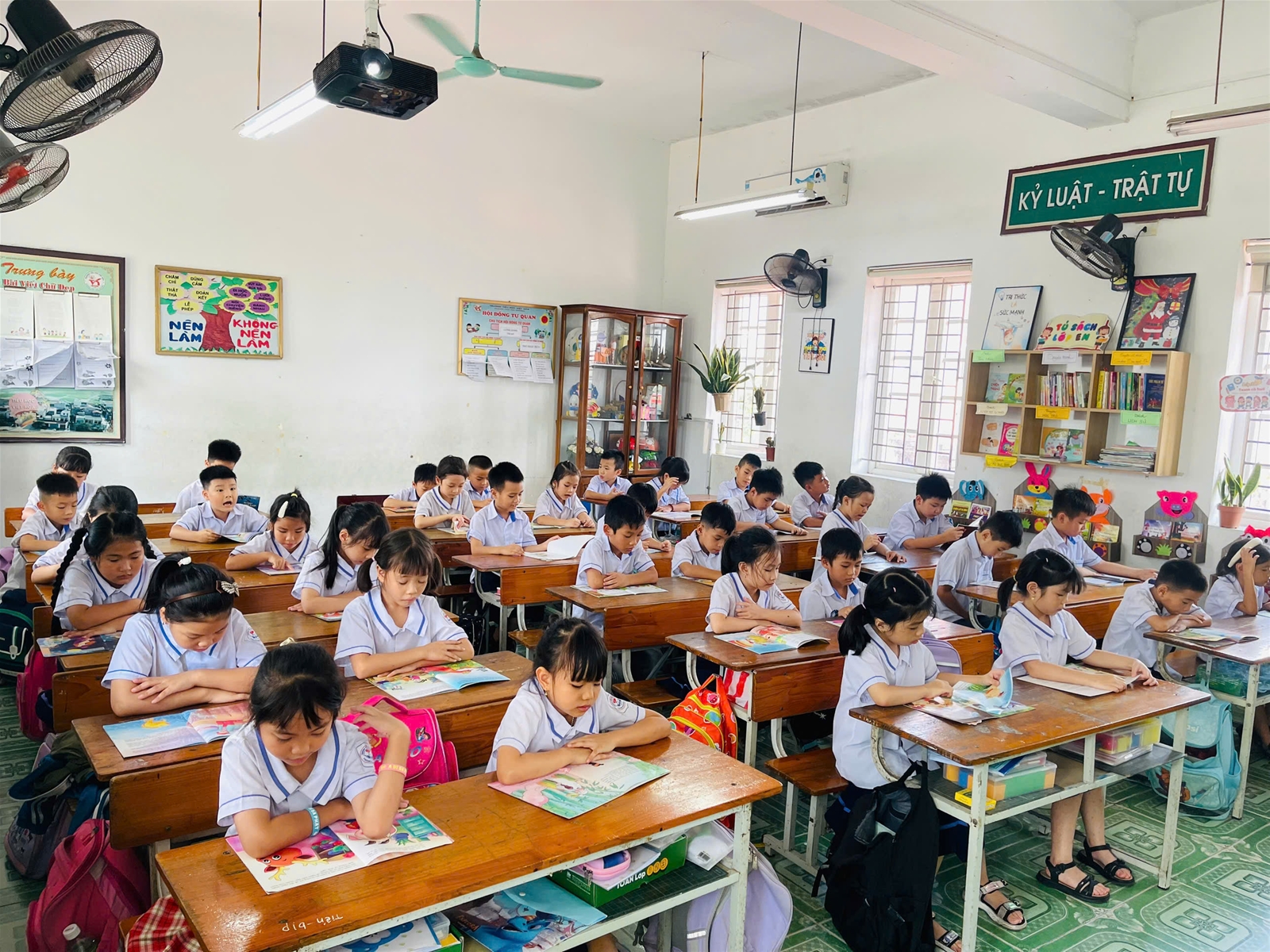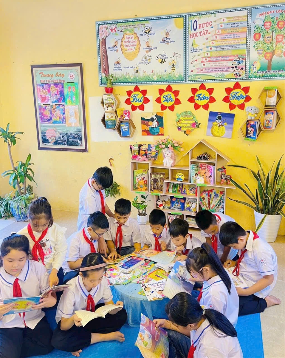 - Các em học sinh được đọc sách tại phòng thư viện, đọc sách tại các không gian ngoài trời, thư viện lớp học, các tiết đọc sách trong chương trình môn Tiếng việt cũng được tổ chức với nhiều hình thức hấp dẫn, đa dạng.