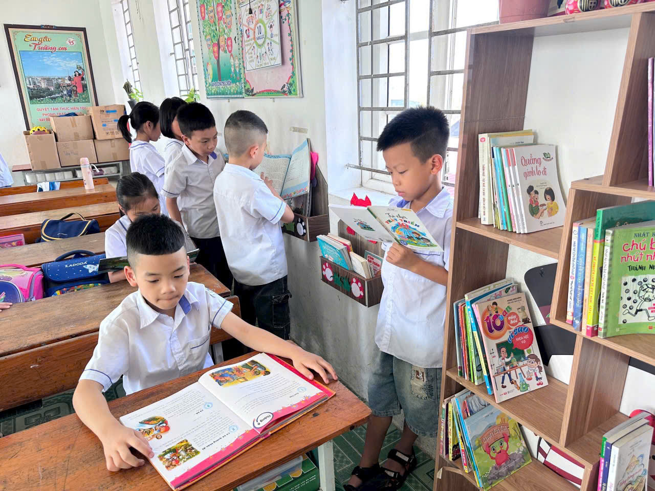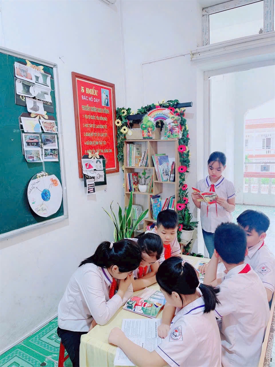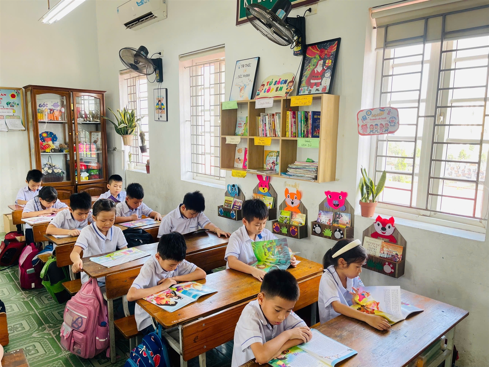 - Phát động phong trào xây dựng “tủ sách lớp học”. Các em học sinh cùng nhau mang những cuốn sách yêu quý của mình đến lớp và giới thiệu với các bạn về cuốn sách, cùng nhau chia sẻ những cảm nhận của mình về những hình ảnh đẹp, những câu văn hay, những nhân vật mình yêu thích.